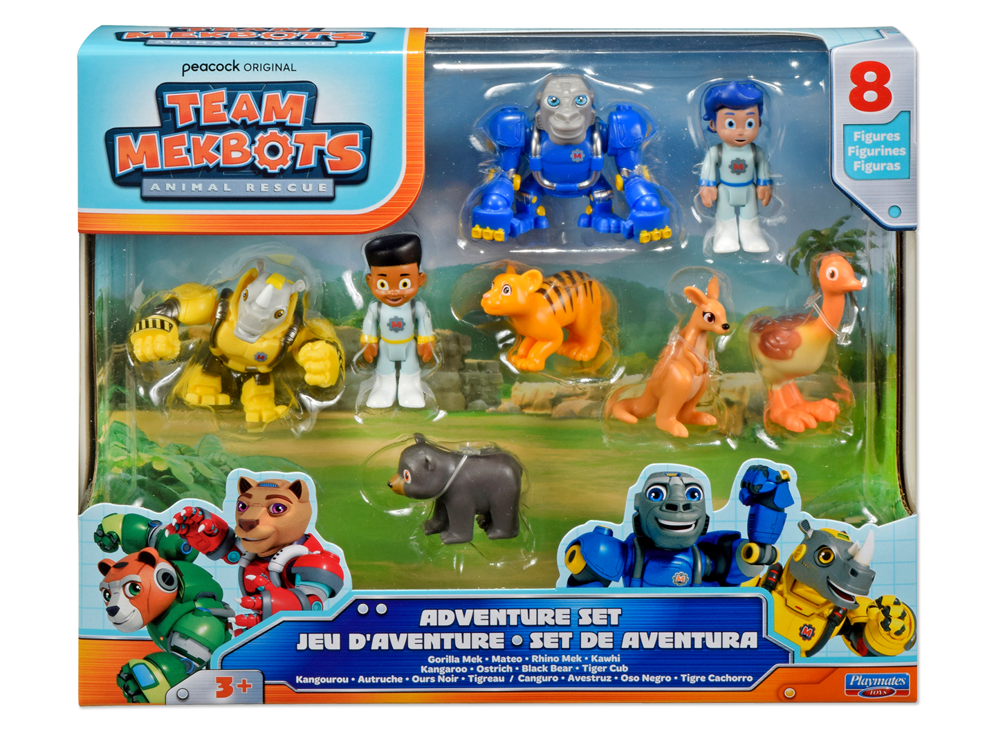 SET INCLUDES: This 8-figure Adventure Set comes with Mateo, Gorilla Mek, Kawhi, Rhino Mek, and four additional rescue animals.