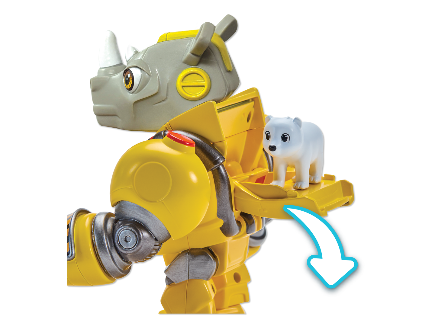 SET INCLUDES: Rhino Mek, Pilot Kawhi, and a Polar Bear Cub for rescuing.